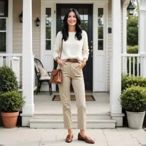 Wide-leg linen pants are commonly made with a cream color that is ideal for neutral outfits. This neutral color is also flattering for many different skin tones. Linen pants are breathable and will provide comfort with class, which is very beneficial for women over 60.