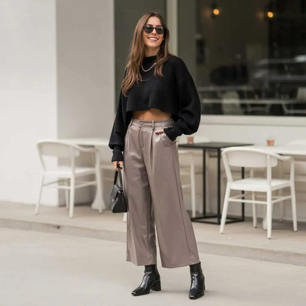 Once the reigning champion of fashion trends, low-rise pants are often dismissed, yet they can provide a playful nod to style’s cyclical nature if worn correctly. Pairing low-rise, wide-leg styles with a cropped oversized sweater creates a striking balance, showcasing just enough skin without crossing into uncomfortable territory. The wide legs keep the silhouette relaxed, while the ankle boots are a perfect choice to create height without compromising comfort. A slim handbag and classic sunglasses tie the look together seamlessly. Experiment with muted tones to maintain sophistication, and you’ll find that low-rise pants can still make a stylish statement when approached with confidence and creativity.