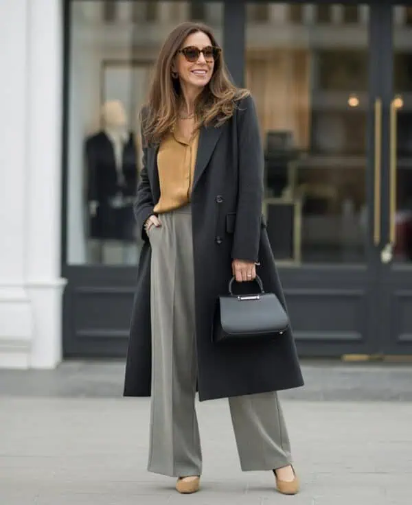 Elevate your winter wardrobe by pairing a structured cardigan with a silk blouse, striking the perfect balance between cozy and chic. The structured cardigan adds definition and shape, allowing you to maintain a polished silhouette despite the often loose fitting nature of winter layers. The softness of the silk blouse peeking out from underneath adds a touch of elegance that contrasts beautifully with the cardigan’s texture. Opting for tailored black trousers helps streamline your look, while pointed-toe flats keep it sophisticated and comfortable. Accessorizing with pearl earrings and a structured handbag ties everything together, ensuring you exude confidence and style whether you’re heading to brunch or a cozy dinner with friends. This combination not only keeps you warm but also gives your outfit a thoughtful, put-together finish. Embracing soft hues like blush alongside classic shades like gray and black allows for versatility, letting you slide from day to evening effortlessly.