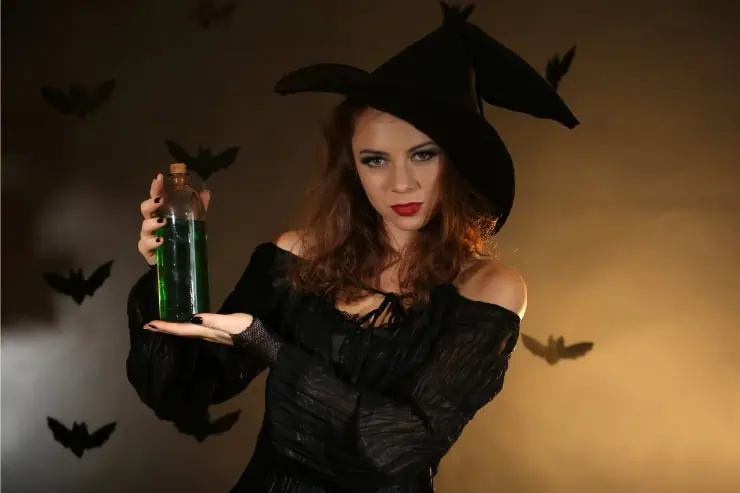Forget the pointy hat and broomstick today’s witch is minimalist, sleek, and powerful. Start with an all-black ensemble: a tailored blazer, silk blouse, and high-waisted trousers or a flowing midi skirt. Add layers of silver jewelry, perhaps a statement pendant or bold cuff. A hint of sheer fabric like a tulle sleeve or lace detail adds mystique without feeling overdone. Finish with smoky eyes and dark lipstick for that mysterious edge. This version of the witch exudes strength and allure, proving magic doesn’t need theatrics to be spellbinding.
