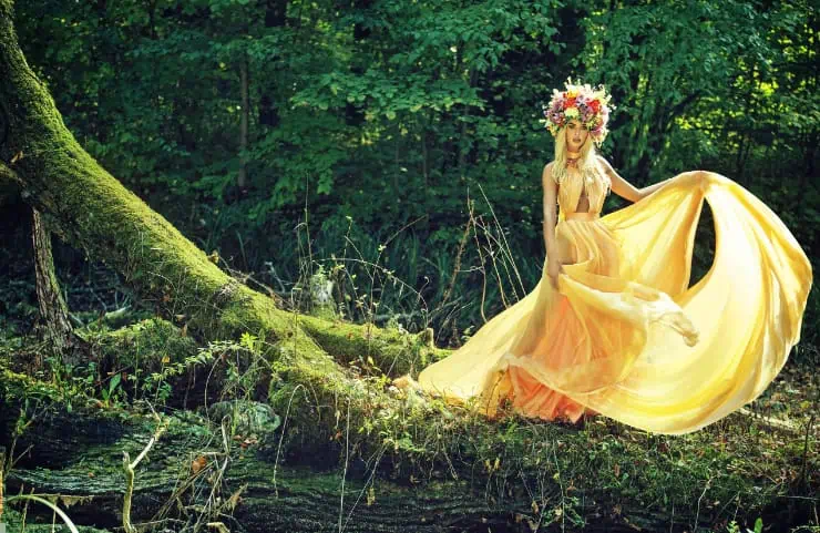 This look blends nature-inspired textures with regal undertones. Start with earthy tones emerald, gold, and bronze then layer flowing fabrics like chiffon or velvet. A statement cape or wrap adds drama, while delicate jewelry in leaf or vine motifs brings the theme together. Finish with soft, glowy makeup and a braided hairstyle adorned with subtle floral clips. It’s ethereal, powerful, and deeply feminine perfect for those who prefer fantasy elegance over Halloween kitsch. You’ll feel like a queen of autumn rather than a creature of the night.