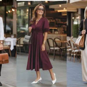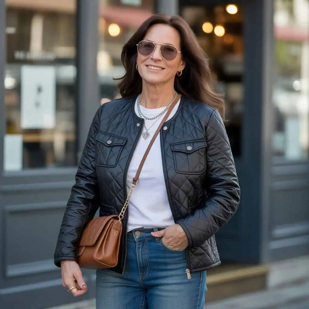 Embracing warmth and style, a fitted mustard quilted jacket becomes an instant favorite for women over 60. The colour balances the whole wardrobe, working wonders against neutral tones like denim and white. This jacket’s lightweight yet insulating fabric makes it perfect for transitional weather while offering a tailored silhouette that flatters various body shapes. Pair it effortlessly with jeans and a classic white tee for a chic yet relaxed look. Accessorizing with layered necklaces and chic sunglasses injects personality, elevating your outfit for a casual outing or a coffee date. The added height of low kitten heels keeps it sophisticated without compromising comfort—perfect for a woman on the go!
