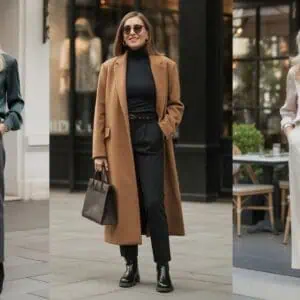 Opting for a monochrome outfit is a brilliant way to make a chic and polished statement right from the start. When styled with a tailored long coat, it elevates the look to new heights, creating a streamlined silhouette that exudes confidence. Black is universally flattering and conveys sophistication, while the texture of a knitted turtleneck paired with sleek trousers adds depth. Accessorizing with oversized sunglasses and gold stud earrings introduces a touch of luxury without overpowering the outfit. The key here is the way the long coat frames the figure—it commands attention and lets the confidence shine through, ensuring you leave a memorable impression.