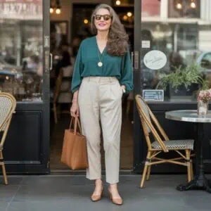 Layering is the secret weapon of transitional dressing, and a denim jacket peeking out from beneath a trench coat offers the perfect blend of texture and casual chic. This combination allows the structured elegance of the trench to contrast with the relaxed vibe of the denim, creating a look that feels effortlessly stylish. The deep shades of the trench provide a sophisticated backdrop that elevates the casual nature of the jacket while still letting your personal style shine. When paired with tapered trousers and loafers, this ensemble maintains a polished aesthetic, making it suitable for both daytime excursions and casual evenings out. Don’t forget a silk scarf and aviators to add a touch of flair!