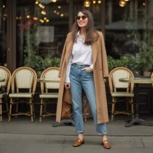 1. Camel coat + jeans