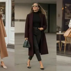 Pairing a camel coat with wide-leg trousers creates a sophisticated yet relaxed vibe that resonates perfectly with the Italian ethos of effortless chic. The neutral tones of the coat and trousers not only exude timeless elegance but also provide an ideal canvas for layering, allowing for versatility—whether it’s a crisp autumn day or a cozy evening. The belted detail accentuates the waist, offering a flattering silhouette, while ballet flats keep the outfit grounded and comfortable. This combination effortlessly merges style with practicality, perfect for any woman looking to navigate her day with grace and confidence.