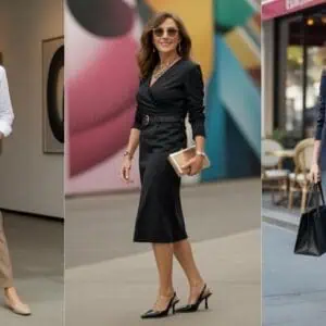 A belted knit jacket embodies effortless elegance, making it a go-to for French women over 60. The ability to cinch at the waist not only enhances the silhouette but also adds a touch of sophistication to a relaxed look. Pairing it with a classic white blouse and loose-fitting trousers strikes the perfect balance between comfort and style. The nude ballet flats bring an air of understated chic, resembling the quintessential Parisian vibe. Accessories like oversized sunglasses and a clutch elevate the outfit without overwhelming it, allowing the wearer to exude confidence and grace.