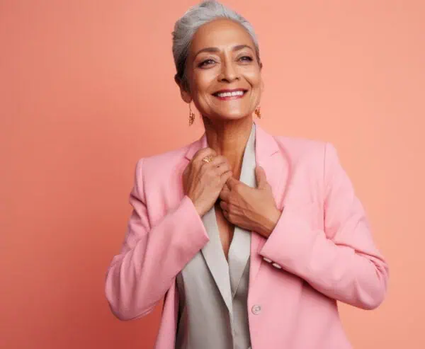 The charm of a tweed jacket lies in its timelessness and texture, making it a perfect choice for cooler days. When styled with a crisp white blouse and ankle-length trousers, it strikes the ideal balance between casual and chic, embodying that effortless French aesthetic. The checkered pattern adds an element of interest, while ballet flats keep the ensemble comfortable yet elegant. Minimal jewelry allows the outfit’s textures to shine, while a well-chosen clutch provides just the right amount of polish. This combination is perfect for any occasion, setting a sophisticated tone without sacrificing comfort, proving that age is just a number in the style game.