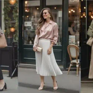 When it comes to dressing with elegance, luxe fabrics are non-negotiable. A silk blouse tucked into soft, wide-leg trousers creates a harmonious balance, hugging curves in all the right places while providing a laid-back yet polished effect. Soft whites juxtaposed with jewel tones in the blouse can elevate the entire ensemble, allowing you to make a statement without overwhelming your figure. The low block heels not only make a nod to comfort but also enhance your stance gracefully. The addition of a silk scarf and delicate pearls offers a touch of sophistication, turning an everyday outfit into something truly special.