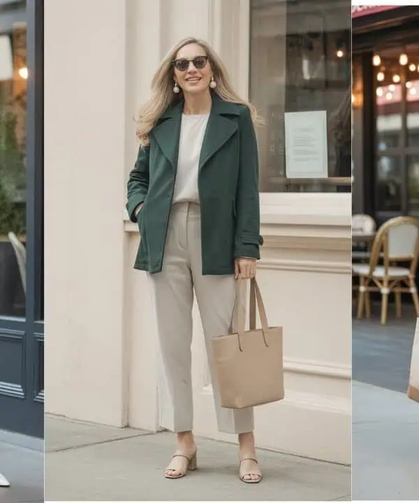 The oversized blazer has made a triumphant return, and for good reason! This chic staple channels an effortlessly elegant vibe, making it perfect for those over 60. The slightly relaxed silhouette allows comfort without sacrificing style, and it works beautifully with various outfits. Pairing it with tailored trousers and a tucked-in blouse creates a polished yet casual look that’s perfect for lunch dates or gallery strolls. The structured tote bag and cat-eye sunglasses inject modernity, while the gold jewelry adds just the right touch of sophistication. Embrace this jacket—it’s timeless and adaptable!