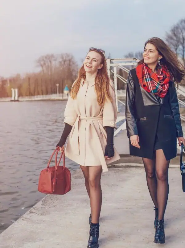 Deep, rich colors like burgundy are a fabulous choice for winter, bringing warmth and an air of refinement to your wardrobe. An oversized coat in this sumptuous hue can energize classic staples like a black turtleneck and straight-leg indigo jeans, making the outfit simultaneously cozy and polished. The addition of classic black pumps elevates the entire look, adding a touch of elegance that is perfect for both daytime outings and evening events. Accessorizing with a sleek black clutch and statement earrings introduces a playful contrast, while the slim rectangular sunglasses finish the look with a modern flair. Opting for burgundy will certainly signal confidence and a keen fashion sense throughout the cold months.