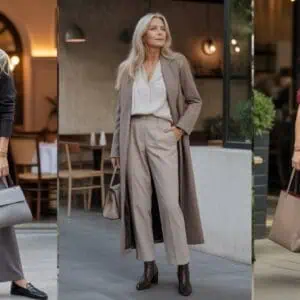 Wide-leg trousers are a true fashion triumph for women over 60, combining comfort with elegance. Their forgiving silhouette flatters various body types while offering the freedom of movement that tighter styles simply can’t match. High-waisted designs create a lovely long-legged appearance and can easily enhance your natural waistline when paired with a tucked-in shirt. Opting for neutral tones, like beige, ties your look together effortlessly and allows for versatility in accessorizing. With chic loafers and a structured tote in the mix, you achieve a stylish, sophisticated vibe that radiates confidence, perfect for any outing or event.