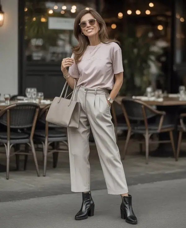 Italian women don’t wait for a “better” body to enjoy style. Sleeveless tops, tailored pants, fitted knits, and elegant dresses are worn regardless of age. Americans often associate confidence with youth or fitness milestones. Italians associate confidence with self-acceptance. This doesn’t mean dressing provocatively, but dressing honestly. The body is treated as a living presence, not a problem to solve. What feels bold to Americans is simply comfort with reality.