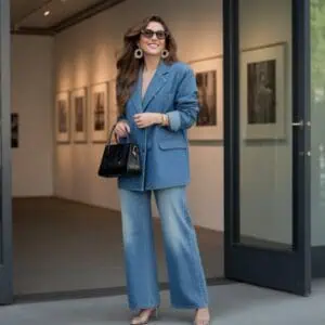 Layering is key this season, and combining a plaid button-down with a structured sweater vest is a perfect way to achieve a polished yet relaxed look. The earthy tones of the plaid add a warm touch, while the structured vest elevates the overall silhouette, creating a nice balance between fitted and flowy. This combination works beautifully for both casual outings and more polished engagements, providing versatility. Paired with chunky lace-up boots, the outfit remains grounded and trendy. Accessories like small gold hoops and round sunglasses add a hint of finesse without overpowering the layered look.