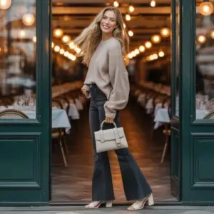 Combining a crewneck sweatshirt with wide-leg pants is a masterclass in achieving effortless elegance while keeping comfort at the forefront. The soft fabric of the sweatshirt not only feels cozy against the skin during long waits but also adds a relaxed vibe that pairs beautifully with the structured flow of wide-leg trousers. This combination elongates the legs, creating a flattering silhouette that’s perfect for navigating bustling terminals. The addition of delicate gold necklaces and chic sunglasses elevates the whole ensemble, turning heads without trying too hard. White sneakers ground the outfit, ensuring you’re ready to sprint to your gate while maintaining an air of understated chic.