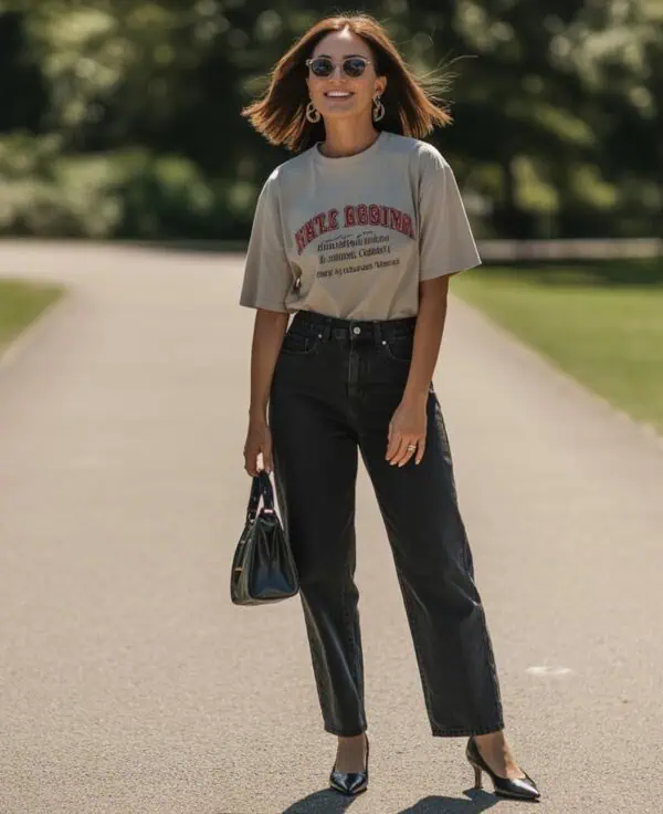 Neutral heels or flats are a must-have for any woman’s wardrobe, particularly in your 30s, when effortless style meets practicality. By complementing any color palette, these shoes serve as the foundation for countless outfit combinations. Consider a pair of pointed-toe flats for a chic touch that elongates your legs and provides comfort throughout the day. Tucking in a tailored shirt into high-waisted trousers creates a sophisticated silhouette, while the structured crossbody bag adds a modern twist. This silhouette is equally suitable for brunch dates or creative workspaces, ensuring you’re always dressed to impress without sacrificing comfort. Experiment with accessories, like minimalist jewelry, to create a personal signature style!