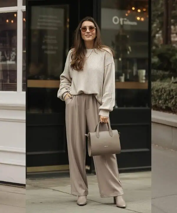 Opting for linen-blend wide-leg trousers is a fabulous way to embrace both comfort and sophistication, particularly in warmer seasons. The lightweight fabric breathes effortlessly, allowing for movement without cling, which is essential as we prioritize comfort in our wardrobe. Pairing these trousers with a fitted tank top tucked in creates a striking contrast, accentuating your natural shape while still providing a relaxed feel. Stylish mules offer an understated yet trendy footwear choice, grounding the look without overpowering it. This combination is not just ideal for casual outings; it’s an effortlessly chic ensemble that transitions well from day to evening, ensuring you stay stylishly comfortable all day long.