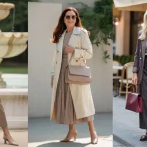 Why not embrace the art of layering with a tailored vest over a blouse? This combination strikes a beautiful balance between structured and soft, highlighting your silhouette while offering a refined appearance. Opting for a pleated midi skirt adds movement and grace, making every step feel feminine yet confident. Block-heeled pumps elevate this outfit perfectly, giving you a bit of height while ensuring comfort. Accessorizing with statement pieces like bold sunglasses and layered gold necklaces introduces personality and flair, proving that elegance knows no age. This outfit not only works for sophisticated outings but also empowers you to express your unique style stylishly and confidently.