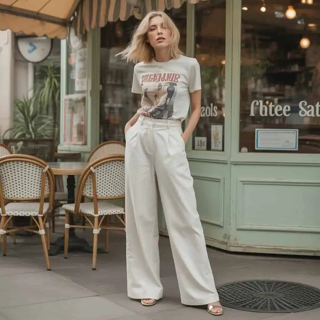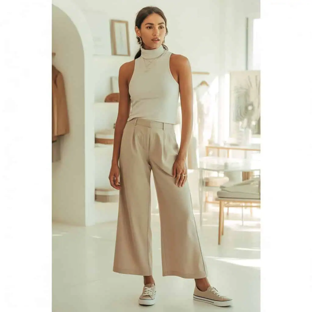The magic of wide-leg pants lies in their ability to create a stunning silhouette while providing maximum comfort. This style elongates the legs and adds a relaxed, yet polished vibe to any ensemble. Pairing these flowing trousers with a fitted tank top strikes that perfect balance between structured and easy-going. The contrasting fit draws attention to your waist while allowing for movement and breathability, making it perfect for sunny days spent outdoors. Opt for fun patterns or bold colors to reflect your personality, and don’t forget a pair of comfortable flat sandals to keep your style effortless yet chic.