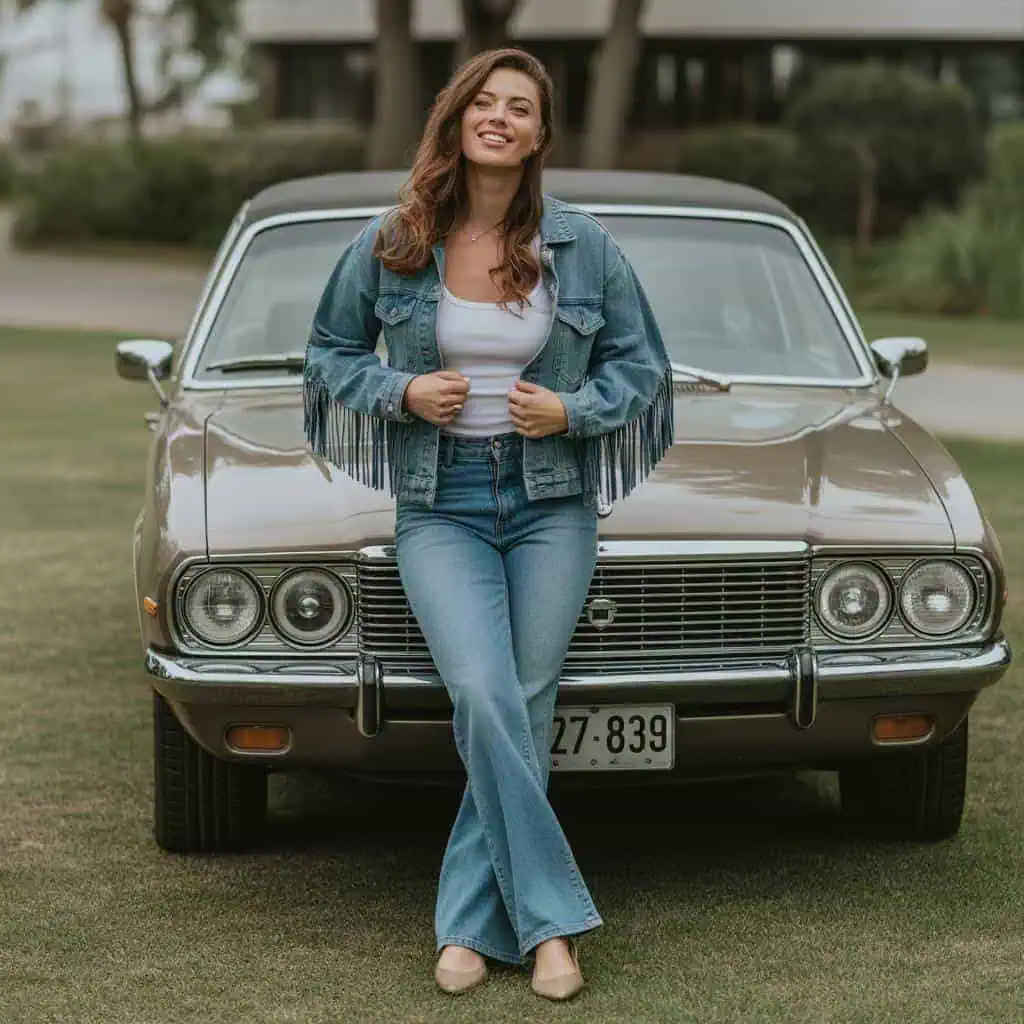 Fringe details add a playful, bohemian flair that’s quintessentially 70s. Think of a denim jacket with gentle fringe – it brings a laid-back vibe to any outfit while showcasing your unique personality. Pair it with a simple white tank top and flared jeans for balance; the fringe draws attention without overwhelming your look. This combination is not just about style but also comfort, letting you express yourself while feeling at ease. Slip-on flats elevate the casual aspect, making it perfect for day-to-night transitions. Embrace this dynamic textile play and let your outfit sway with every move!