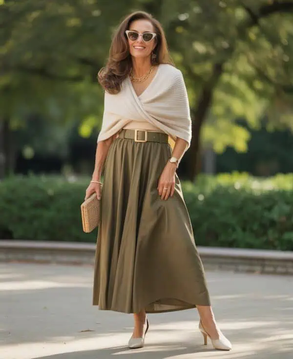Boxy sweaters without shape can add width instead of style. The lack of waist definition often hides your natural curves and makes the body appear square. To avoid this, try tucking in just the front portion of your sweater (a “French tuck”) or layering with a belt to reintroduce structure. Sweaters with slight tailoring or curved hems also help define the body’s natural silhouette. The goal isn’t to wear tight clothing but to show intentional shape. Even a small adjustment in how your sweater fits can dramatically change your overall balance.
