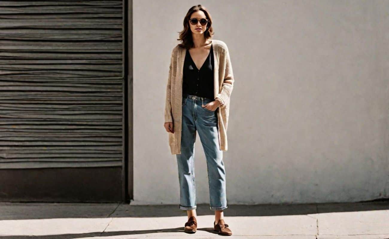 Thinking of going on a casual date right at the spur of the moment without spending hours and hours on an outfit? Take this casual date outfit pairing a long cardigan with a black V-neck top layered underneath, styled with the classic straight-leg jeans!