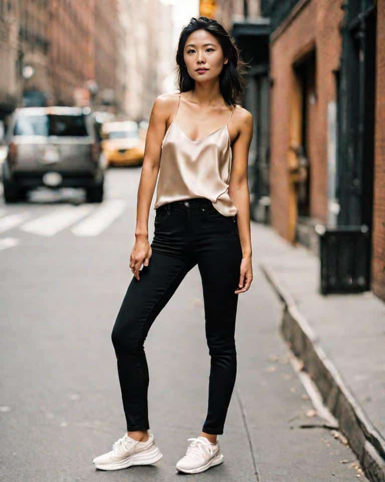 If you’re thinking of something easy to pull off but looks elegant, go for a satin cami top! It is a great choice for a casual date for it gives a touch of luxury to your outfit and drapes beautifully over your figure.