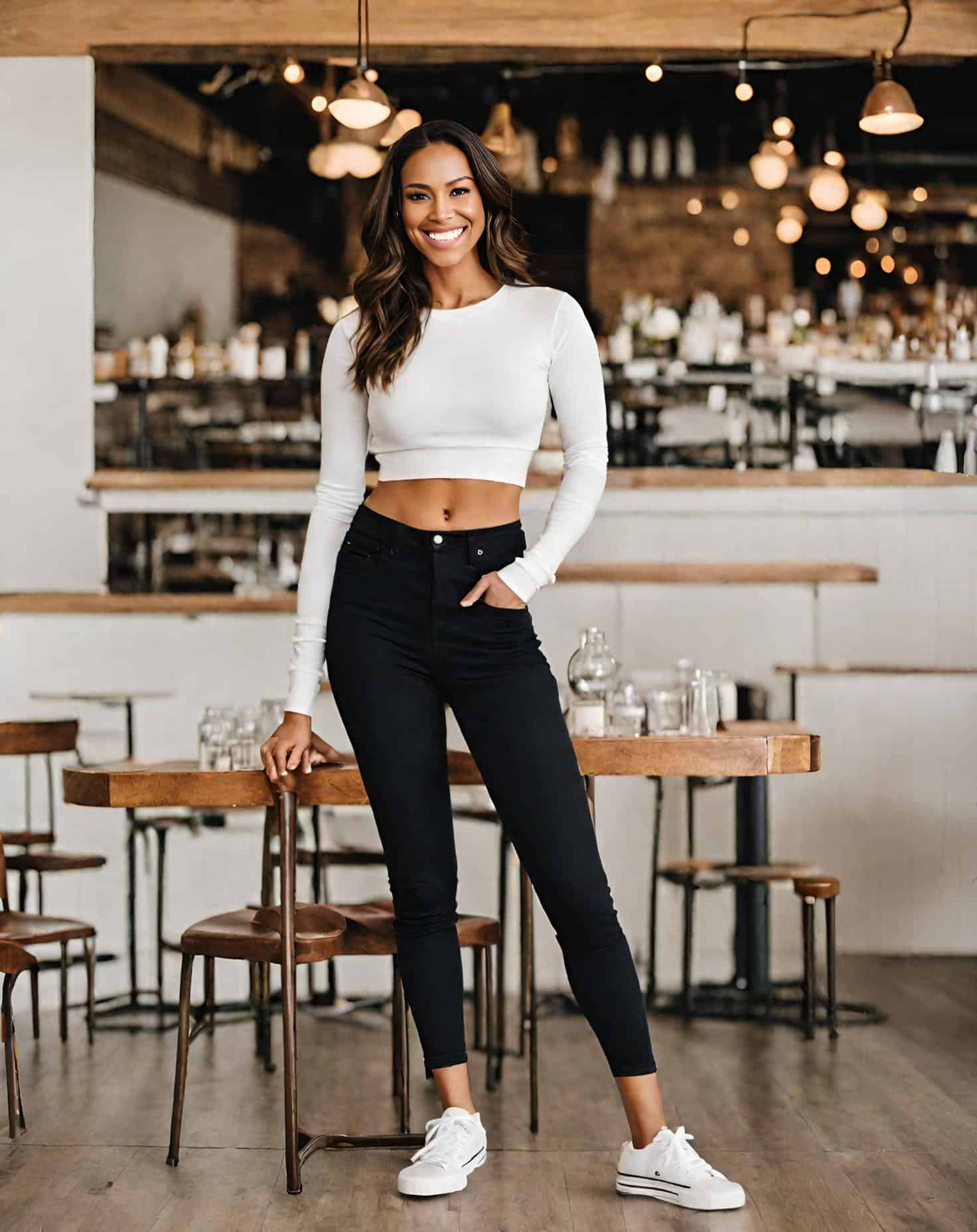 I know how the idea of enduring walking in high heels when you’re on a date can be absolutely nerve-wracking! Well, white sneakers will always be a stylish and versatile choice to offer your casual outfit a fresh and modern look.