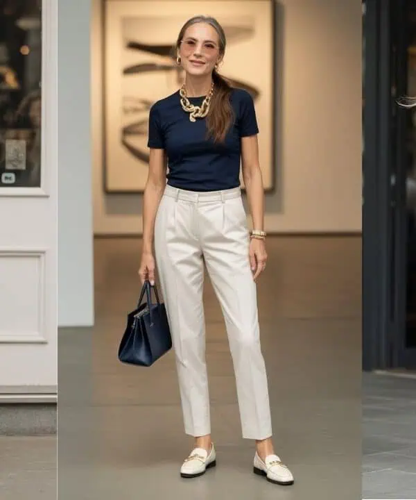 The reason is 3/4 sleeve length ends on your wrist, drawing attention to the smallest part of your arms, which is a very feminine way to dress over 60, without being revealing at all.
