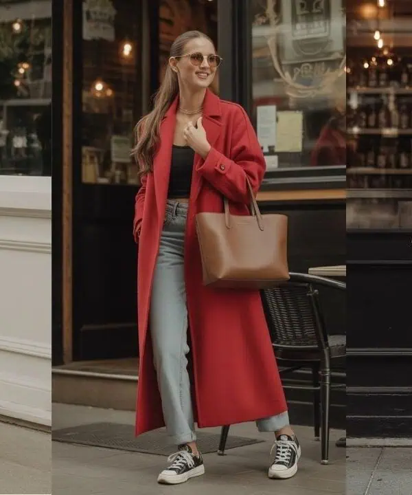 If you’re in the mood to show off your legs, then denim shorts will be just perfect as bottoms while white sneakers will give an athletic vibe.