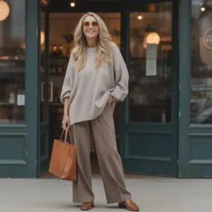 Say goodbye to puffy ruffles and say hello to clean pleats for a sophisticated upgrade. Pleated blouses are a fantastic way to introduce texture without overwhelming your look. A cream pleated blouse tucked into stylish wide-leg trousers achieves that perfect fusion of elegance and modernity. The pleats add just enough visual intrigue, while still maintaining a polished appearance. Choosing pointed-toe flats keeps the outfit grounded and practical for extended wear. Whether you’re in an art gallery or a brunch setting, this ensemble communicates confidence and care in your style choices, ensuring you look effortlessly put together.