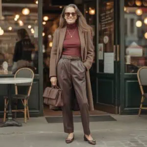 High-rise pants and skirts help lengthen the appearance of your legs, especially when tucked in or paired with a fitted top. They also tend to offer better support and comfort around the waist. For women over 60, a flattering high-rise cut can smooth the midsection and create a lifted silhouette. Look for trousers that sit just above your natural waist and fall straight or slightly tapered. Avoid wide, low-rise cuts, which can shorten the torso and create unnecessary bulk at the hips.