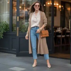 Silk-blend column dresses are a timeless choice for spring, offering a perfect blend of elegance and comfort that flatters all body types, especially as we embrace our 60s. The high neckline provides an air of sophistication while gentle draping cascades gracefully down the silhouette, creating a refined look without feeling cumbersome. Opting for neutral or deep tones, such as navy, adds a touch of class, making it suitable for both daytime outings and evening events. Pair this dress with nude slingback heels to elongate the legs, and accent with oversized sunglasses and a chic handbag for a polished vibe that radiates confidence and ease.