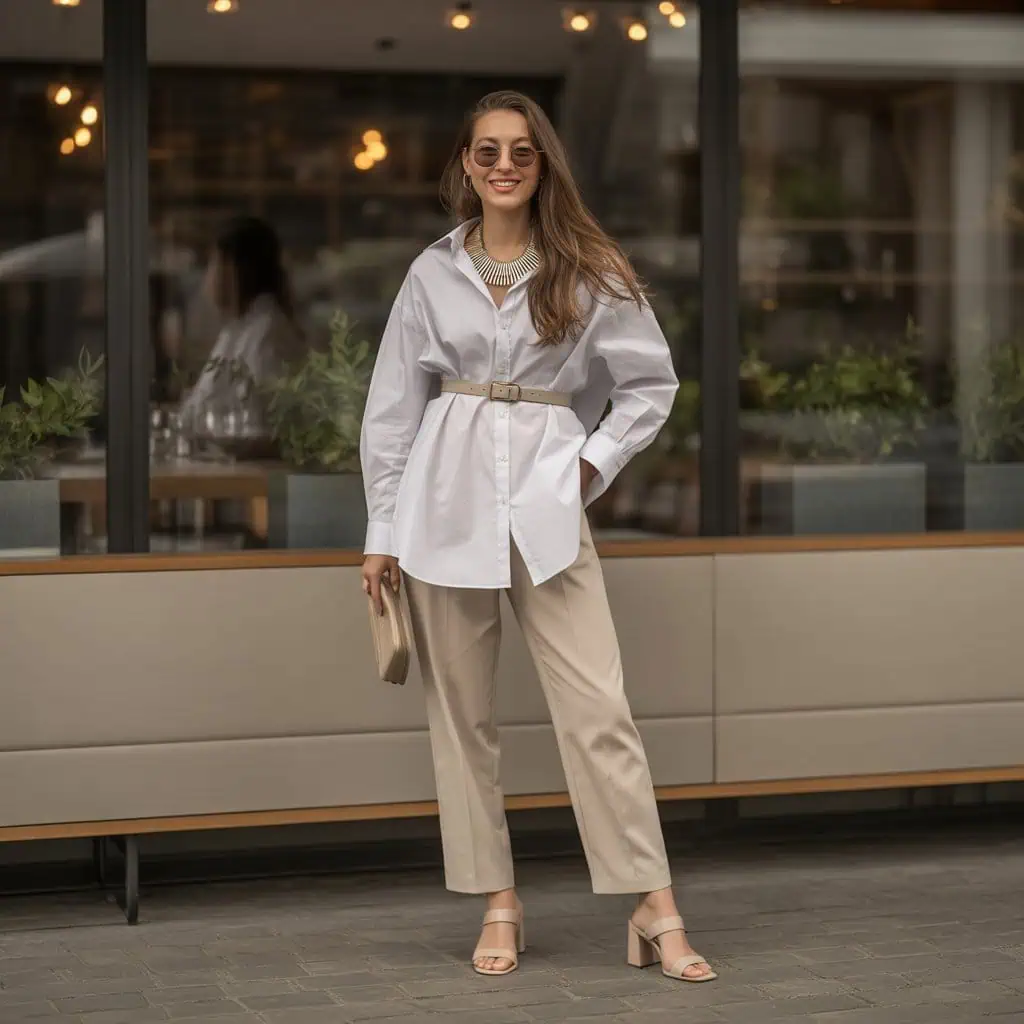 When aiming for sophistication, toning down logo-heavy tees is essential. Instead of a loud graphic that can misinterpret your fashion understanding, consider a classic high-waisted skirt that showcases your silhouette beautifully. A fitted, cropped tailored blazer transforms the casual nature of a tee into something more refined, allowing you to maintain comfort without compromising elegance. Black leather loafers ground the look while adding a touch of seriousness, and structured handbags further elevate your outfit. The final touch of gold stud earrings adds a hint of sparkle, ensuring your look radiates confidence and style during any dinner engagement.