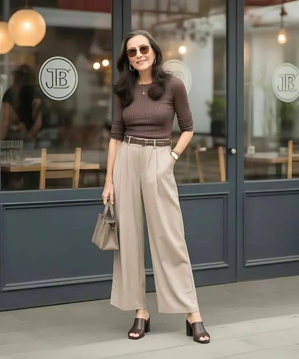Flowing, wide-leg trousers are proof that comfort and chicness can coexist beautifully. Their drapey fit allows for easy movement and ultimate coziness, the structured cut ensures you look put-together, not sloppy, and the wide-leg style elongates your figure, giving your legs a long, lean look.