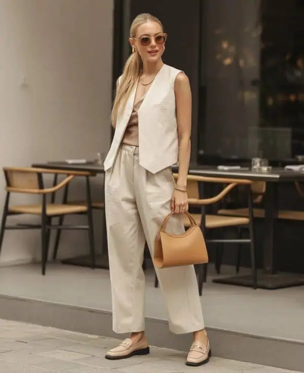 You’re preparing for your first date, and you want to achieve modern sophistication. Enter the matching vest and wide-leg pants set.