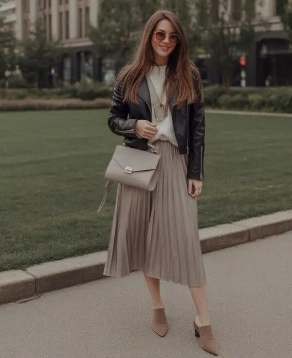 Also, layering a leather jacket not only adds more style but can also provide seasonal adaptability. What an edgy way to keep you warmer in colder seasons, right?