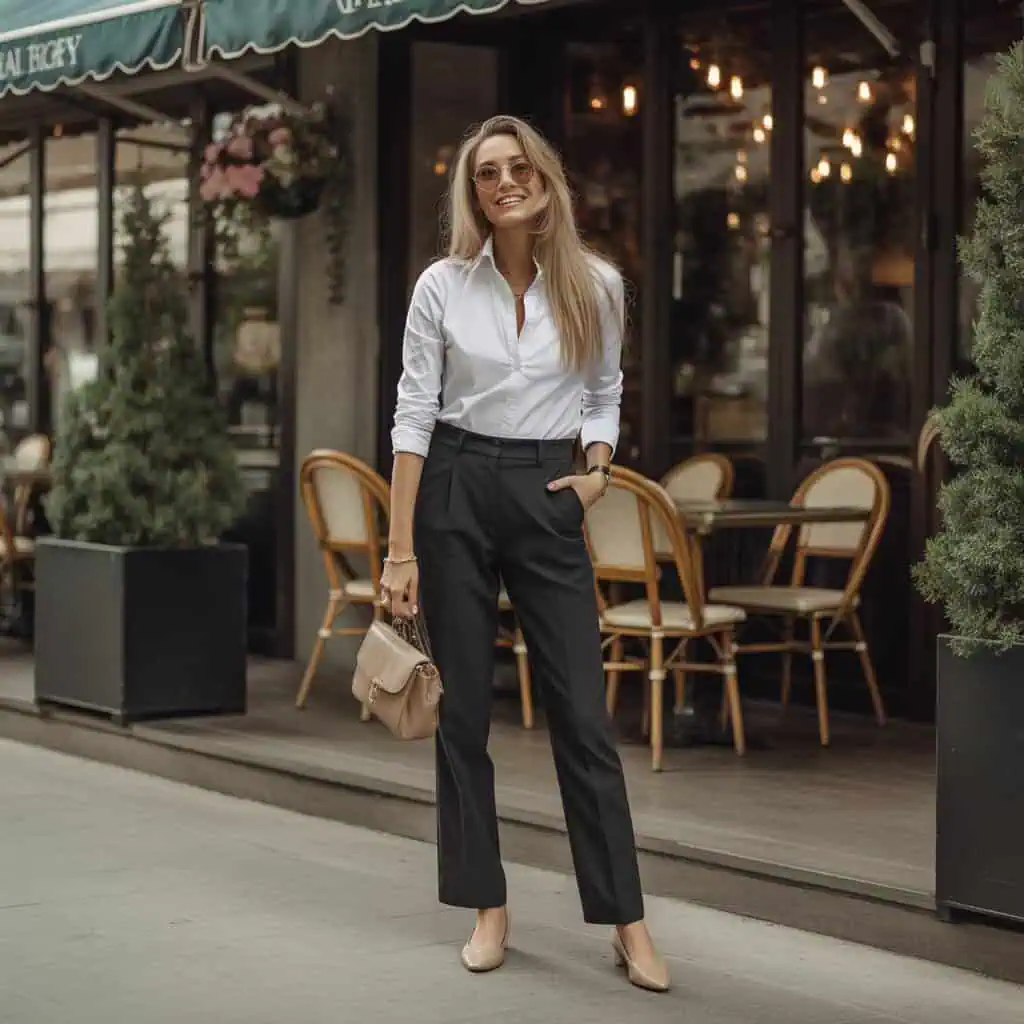 Embracing a palette of timeless colors is a surefire way to curate a wardrobe that feels fresh without straying too far from your personal style. The harmonious blend of muted tones in this look is proof that neutral shades always deliver elegance and sophistication. A beige tote bag complements the overall color scheme, ensuring that your accessories don’t steal the spotlight. Layering with soft cardigans or simple blouses in similar shades creates a seamless look that’s both easy to put together and endlessly versatile. This approach not only simplifies your morning routine but guarantees that you’ll always look put-together, effortlessly transitioning from day to night.