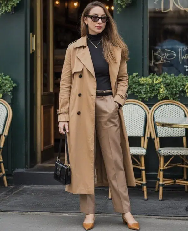 Channel your inner icon with a classic trench coat that radiates timeless elegance – it features a tailored silhouette that enhances your waist and elongates your legs. The belted detail not only cinches your figure but also adds a refined touch to any outfit.