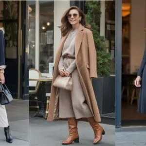 Embracing a monochrome palette is a hallmark of polished French style, and there’s something incredibly sleek about a well-coordinated navy outfit. A fitted blazer worn over tailored trousers with a tucked-in top creates a streamlined effect, emphasizing not just shape but also confidence. The use of similar shades throughout allows for subtle depth, while black ankle boots soften the look and add a touch of warmth. Minimal gold stud earrings serve as delicate accents that don’t distract from the overall elegance. This outfit is a testament to how powerful simplicity can be, allowing the wearer’s personality to shine through without being overshadowed by overly complicated choices.