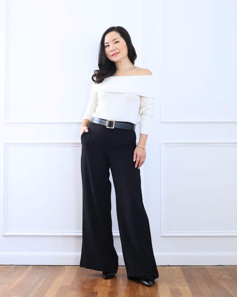High-rise anything is a petite girl’s best friend. It visually lifts the waistline, making your legs look longer and your proportions more balanced. I adore these black wide-leg pants—they flow so nicely and don’t overwhelm my frame because of the high waist.