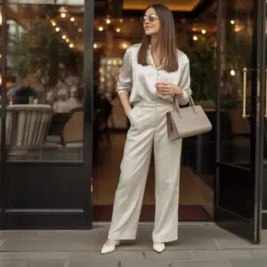 Pairing an oversized blazer with straight jeans and a classic tee perfectly encapsulates the effortless chic look. This combination strikes a fine balance by grounding the blazer’s structured silhouette with the laid-back feel of denim. The high-waisted design of the jeans elongates the legs, while a tucked-in tee allows the blazer to shine without feeling overwhelming. Accessorizing with pointed-toe heels adds a touch of polish, while a structured handbag keeps everything looking put-together. This outfit radiates casual elegance, ideal for everything from brunch to casual Friday at the office.