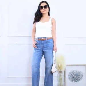 These days, I care more about a flattering fit than what’s trending on social media. I recently wore a fitted basic tank with wide-leg jeans, and it felt like the perfect balance of relaxed and refined. I added a classic brown belt and skin-tone heels to lengthen my legs and give the outfit a little extra polish. No trendy cuts or flashy extras—just clean lines that fit well and feel good.