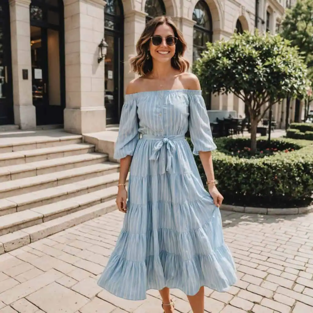 One piece that’s loved for its long, sweeping silhouette that glides with every movement is a spaghetti strap maxi dress. The spaghetti straps add a delicate touch, while the maxi length creates a dramatic effect, making it a must-have for summer.