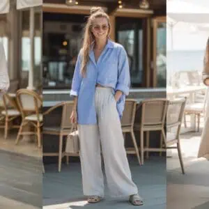 Suede ankle-strap sandals add a touch of sophistication to your summer wardrobe and work beautifully in layered looks. When paired with tailored black shorts and a crisp white button-up shirt, these sandals create a refined yet relaxed vibe that’s perfect for everything from brunch to outdoor gatherings. The ankle strap not only provides a secure fit but also elongates the leg line, enhancing your silhouette. A neutral-colored tote bag rounds out the look seamlessly, ensuring you’re both stylish and practical. With this combination, your outfit becomes an extension of your confidence, garnering compliments as you stride confidently into any space.