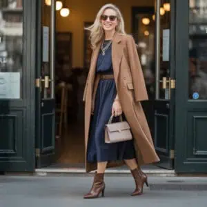 The natural waistline can appear less visually pronounced over time, causing garments without waist reference to look straight or heavy. Many outfits that feel “off” lack any indication of where the torso narrows. Gentle waist placement through seaming, tucking, belting, or wrap shapes restores proportion between upper and lower body. This doesn’t require tight cinching; even a slight inward line is enough to guide the eye. Without it, garments hang vertically from shoulders to hips, widening perception. Reestablishing waist placement reconnects silhouette structure and often immediately improves outfit harmony.