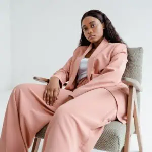 This soft drape midi dress is designed to flatter, thanks to its tie-waist feature that cinches at the waist and creates a flattering contour for petite figures. The rose-colored fabric drapes gracefully, providing movement without drowning the body—an ideal choice for those who want to maintain a polished look. Pairing it with chic purple heels adds a pop of color and helps elongate the legs, essential for petite styling. Accessories should remain minimal—just a small leather bag and delicate gold jewelry will do. This outfit strikes the right balance between feminine and chic, making it perfect for a day or evening out.