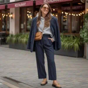 Big logos, sequins, or heavily embellished bags tend to date quickly and can cheapen an otherwise sophisticated outfit. A structured, minimalist leather tote looks far more polished and grown-up. Neutral shades cognac, taupe, black, bone pair with almost everything and convey quiet luxury. A good bag finishes a look the same way good jewelry does: subtle, refined, and timeless.