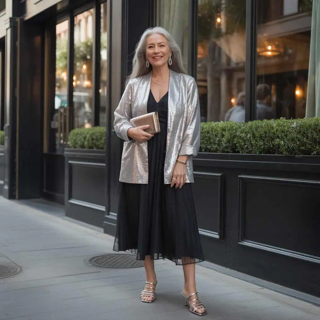 While sequins and glitter can be fun for a night out, daytime sophistication often calls for a more subdued approach to shine. Instead of shimmering jackets, consider investing in pieces that bring out the elegance of your flauntable features. A chic black midi dress paired with more understated metallic accents can lend a beautiful quality to your overall vibe without overwhelming it. Strappy kitten heels and understated jewelry, like drop earrings, keep your look polished and refined. This way, you exude class while letting the simplicity of your outfit do the talking, proving that you can shine without glimmering too much.