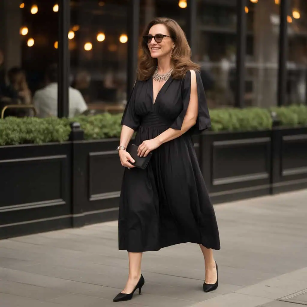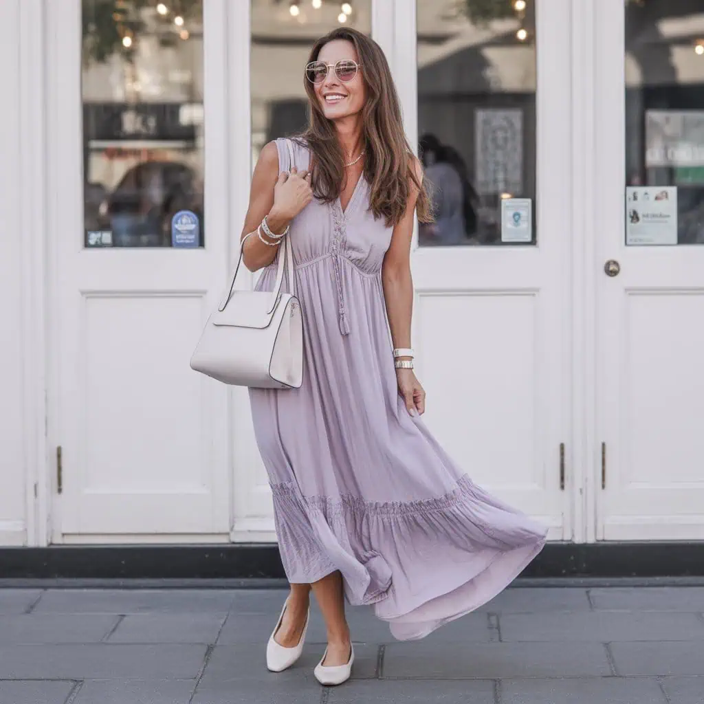 Maxi dresses can be incredibly versatile, but when they are overwhelmed by ruffles, they can become cumbersome and visually heavy. For women over 50, maintaining a polished appearance is key, and excessive ruffles can detract from that. A better choice would be a streamlined silhouette that flatters the figure, perhaps with a subtle drape or gentle flutter sleeves. Opting for a solid color with interesting textures can still bring charm while elongating the body. This creates a refined look that preserves elegance without unnecessary fussiness, ensuring you feel graceful and poised at any occasion.